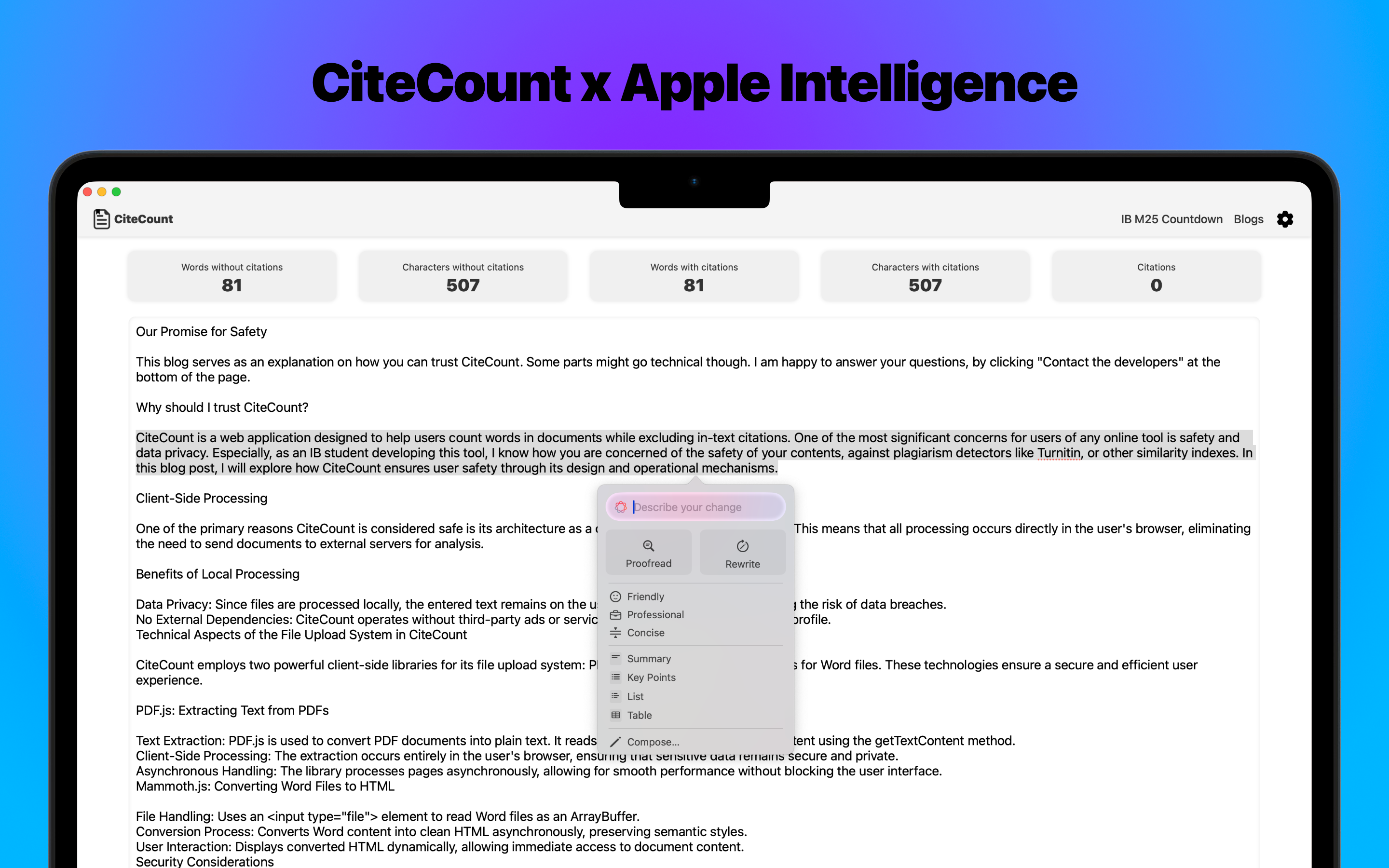 With the official launch of iOS 18.2 and macOS 15.2, Apple Intelligence has been rolled out to devices with new chips. CiteCount is integrated with Apple Intelligence, and this blog will introduce its usage.